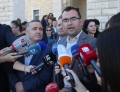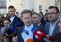 Lecturer Klodian Dhoska speaking during a protest in front of the Polytechnic Faculty of Tirana, after lecturers boycotted the lesson even in the third day of the beginning of the new academic year. The lecturers continued the protest in front of the faculties from 10 am to 12 pm, demanding a 50% salary increase within two years and the improvement of academic and scientific research conditions.