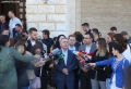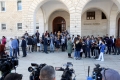DAY THREE OF THE LECTURERS' PROTEST - Lecturer of the Faculty of Arts, Ardian Isufi speaking during a protest in front of the Polytechnic Faculty of Tirana, after lecturers boycotted the lesson even in the third day of the beginning of the new academic year. The lecturers continued the protest in front of the faculties from 10 am to 12 pm, demanding a 50% salary increase within two years and the improvement of academic and scientific research conditions.