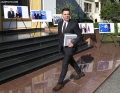 MP Saimir Hasalla entering a parliamentary session, where the electricity situation in the country was discussed, as well as three draft laws were approved. Before the session, an exhibition with the title We grew up in the EU, a joint activity of the Parliament and the Embassy of the Czech Republic, was held.