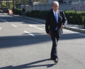 Former Prime Minister Sali Berisha entering a parliamentary session, where the electricity situation in the country was discussed, as well as three draft laws were approved. Before the session, an exhibition with the title We grew up in the EU, a joint activity of the Parliament and the Embassy of the Czech Republic, was held.