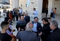 Head of the Lecturers' Union, Aleksander Kovaci and other lecturers protesting in front of the Polytechnic Faculty of Tirana after they boycotted the lesson even on the fifth day of the beginning of the new academic year. The teachers continued the protest in front of the faculties from 10 am to 12 pm, demanding a 50% salary increase within two years and the improvement of academic and scientific research conditions.