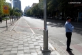 Police banner close to a bus station in the vicinity of Myslym Shyri street in which the traffic was blocked from 8 in the morning until 4 in the afternoon, as part of a series of traffic deviations in Tirana as a result of the holding of the Tirana Marathon 2022. This is the sixth edition of this event which brought to the country's capital about 2500 runners from all over the world, who participated in 4 marathon categories, 'Marathon' (42.1 kilometers), Half Marathon 21 kilometers) and the other 2 races Tirana 10K and We too, which were mostly motivating.