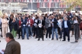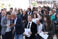 Lecturers during a protest in front of the Polytechnic Faculty of Tirana, after they boycotted the lesson even in the fourth day of the beginning of the new academic year. The lecturers continued the protest in front of the faculties from 10 am to 12 pm, demanding a 50% salary increase within two years and the improvement of academic and scientific research conditions.