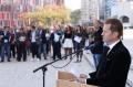 Lecturer of the Faculty of Arts, Ardian Isufi speaking during a protest in front of the Polytechnic Faculty of Tirana, after lecturers boycotted the lesson even in the sixth day of the beginning of the new academic year. The lecturers continued the protest in front of the faculties from 10 am to 12 pm, demanding a 50% salary increase within two years and the improvement of academic and scientific research conditions.