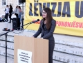 Lecturer at the Faculty of Architecture and Urbanism, Andronira Burda, speaking during a protest in front of the Polytechnic Faculty of Tirana, after lecturers boycotted the lesson even in the sixth day of the beginning of the new academic year. The lecturers continued the protest in front of the faculties from 10 am to 12 pm, demanding a 50% salary increase within two years and the improvement of academic and scientific research conditions.