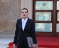 Minister of State for Youth and Children, Bora Muzhaqi speaking in front of the Prime Minister's office, after a government meeting, in regards to the approved decisions.