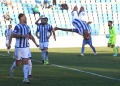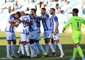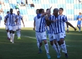 Tirana players celebrate scoring during the football match, Tirana vs Kukesi, 4-1, valid for the Albanian Super League, played at the Selman Stermasi stadium in Tirana.