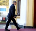 MP Sali Berisha entering a parliamentary session, during which the draft budget for 2023 and the fiscal package for the same year were discussed.