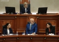 Prime Minister Edi Rama speaking in a parliamentary session, where he debated with MP Ervin Salianji in regards to the Babale case. During the same session, the draft budget for 2023 and the fiscal package for the same year were reviewed.
