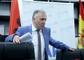 Head of SPAK, Arben Kraja entering a press conference where he announced the holding of a SPAK operation in cooperation with EUROJUST, EUROPOL and the experts of the Spanish authorities. As part of the operation, several call centers in Tirana were hit, which had taken millions from European citizens, especially Spanish ones, through a cryptocurrency-based fraud scheme.
