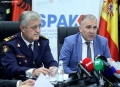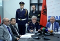 Head of SPAK, Arben Kraja and General Director of the State Police, Muhamet Rrumbullaku and representatives of the Spanish authorities speaking during a press conference where they announced the holding of a SPAK operation in cooperation with EUROJUST, EUROPOL and the experts of the Spanish authorities. As part of the operation, several call centers in Tirana were hit, which had taken millions from European citizens, especially Spanish ones, through a cryptocurrency-based fraud scheme.