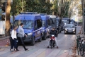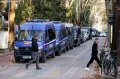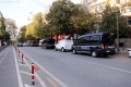Vans and police forces on Gjon Pali II street, standing by before the protest. The Chairman of the Democratic Party, Sali Berisha and the Chairman of the Freedom Party have called the citizens to an anti-government protest in front of the Prime Minister's Office.