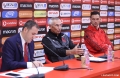 The coach of the Albanian national football team, the Italian Edoardo Reja and the goalkeeper Ertrit Berisha speaking in a conference before the match between the national team and the Italian national football team at the Air Albania stadium.