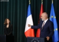 The French Secretary of State for Europe, Laurence Bonne and the Prime Minister Edi Rama speaking during their joint conference after the signing of the agreement between the Albanian government and the French Development Agency for the financing of the water supply network in Durres. The French government will support the financing of the Durres aqueduct through a soft loan of 60 million euros and a grant for technical assistance of 1 million euros.