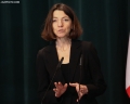 The French Secretary of State for Europe, Laurence Bonne speaking during a joint conference with Prime Minister Edi Rama and the Minister of Finance and Economy, Delina Ibrahimaj after the signing of the agreement between the Albanian government and the French Development Agency for the financing of the water supply network in Durres. The French government will support the financing of the Durres aqueduct through a soft loan of 60 million euros and a grant for technical assistance of 1 million euros.