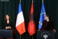 JOINT CONFERENCE WITH BONNE - The French Secretary of State for Europe, Laurence Bonne and the Minister of Finance and Economy, Delina Ibrahimaj speaking during their joint conference after the signing of the agreement between the Albanian government and the French Development Agency for the financing of the water supply network in Durres. The French government will support the financing of the Durres aqueduct through a soft loan of 60 million euros and a grant for technical assistance of 1 million euros.