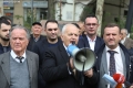 Besim Ndregjoni speaking during a ceremony on the 78th anniversary of the murder of 39 Albanian intellectuals by the communist regime. The persecuted have asked for them to be given a place to rest while they have spoken in front of the building of the Institute of the Political Persecuted.