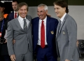 Coach of the Albanian National Football Team, Italian Edoardo Reja, Coach of the Italian National Football Team, Roberto Mancini and his assistant, Gabriele Oriali before the friendly football match Albania vs Italy, 1-3, played at the Air Albania stadium in Tirana.
