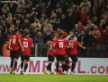 The players of the Albanian national football team celebrate scoring a goal during the friendly football match Albania vs Italy, 1-3, played at the Air Albania stadium in Tirana.