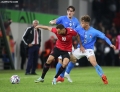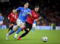 The player of the Albanian national football team, Myrto Uzuni in a duel with Federico Di Marco of Italy during the friendly football match Albania vs Italy, 1-3, played at the Air Albania stadium in Tirana.