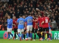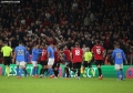 The players of the Albanian national football team and those of the Italian national team clash in a moment of tension during the friendly football match Albania vs Italy, 1-3, played at the Air Albania stadium in Tirana.