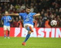 The players of the Italian national football attacking during the friendly football match Albania vs Italy, 1-3, played at the Air Albania stadium in Tirana.