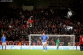 The fans of the Albanian national football team (TKZ) sing with flags in their hands during the friendly football match Albania vs Italy, 1-3, played at the Air Albania stadium in Tirana.