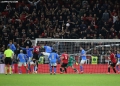 The players of the Albanian national football celebrate scoring a goal during the friendly football match Albania vs Italy, 1-3, played at the Air Albania stadium in Tirana.