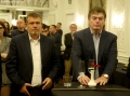 Arben Pellumbi and Mero Baze during the promotion of journalist Baze's book, Republika e Re, in the surroundings of Hotel Tirana, which brings to attention the political events of Kosovo in the 90s. The book was published by UET Press, while Prec Zogaj, who also wrote the foreword of the book, described it as a high-level testimony, which has great value for the future.