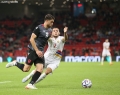 The player of the Albanian National Football Team, Kristjan Asllani in a duel with Varazdat Haroyan of Armenia during the friendly football match, Albania vs Armenia, 2-0 played at the Air Albania stadium in Tirana.