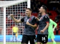 Players of the Albanian National Team, Kristjan Asllani and Tedi Cara celebrating scoring a goal during the friendly football match, Albania vs Armenia, 2-0 played at the Air Albania stadium in Tirana.