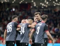Players of the Albanian National Team celebrating scoring a goal during the friendly football match, Albania vs Armenia, 2-0 played at the Air Albania stadium in Tirana.
