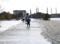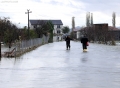 People walking on a flooded road in the village of Kuc near the city of Shkodra. The heavy rains of the last few days in Albania have brought flooding of rivers and floods in the western areas of the country, low-lying buildings and arable lands.