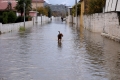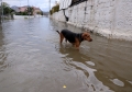 Dog walking on a flooded road in the village of Kuc near the city of Shkodra. The heavy rains of the last few days in Albania have brought flooding of rivers and floods in the western areas of the country, low-lying buildings and arable lands.