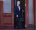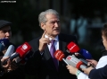 The former prime minister and chairman of the Democratic Party, Sali Berisha, coming out of a parliamentary session after which he spoke to journalists, where he attacked Prime Minister Edi Rama for the Durres port project and for an alliance with the former chairman of the democratic party, Lulzim Basha.