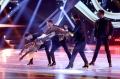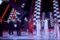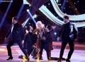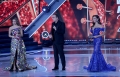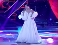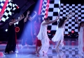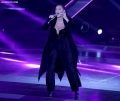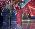 Hostess Eva Murati performing as Rafaella Carra during the 23rd edition of the Kenga Magjike festival, organized in the premises of the Palace of Congresses. While receiving the trophy, one of the members of the group fell. During this edition, the artists competed in four categories, Big International, New International, New Artist and Big Artist, which was the main award of the festival.