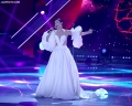 Singer Anxhela Peristeri performing during the 23rd edition of the Kenga Magjike festival, organized in the premises of the Palace of Congresses. While receiving the trophy, one of the members of the group fell. During this edition, the artists competed in four categories, Big International, New International, New Artist and Big Artist, which was the main award of the festival.