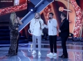 The member of the jury, Kozeta Kurti and Martin Pano, who was declared the winner in the New Artist category during the 23rd edition of the Kenga Magjike festival, organized in the premises of the Palace of Congresses. While receiving the trophy, one of the members of the group fell. During this edition, the artists competed in four categories, Big International, New International, New Artist and Big Artist, which was the main award of the festival.
