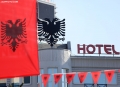 Albanian flags near the Hotel Rogner, in the Deshmoret e Kombit boulevard on the occasion of the national holidays of November 28 and 29. This year celebrates the 110th anniversary of Albania's Independence.