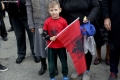 Child with the Albanian flag in his hands during the homages at the Martyrs' Mausoleum in Durres, on the occasion of November 29, the day of the Liberation of Albania.