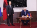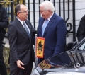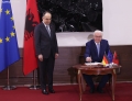 The President of the Republic, Bajram Begaj and his German counterpart, Frank-Walter Steinmeier while writing in the book of impressions during an official reception ceremony at the Presidency. Steinmeier's visit to Albania comes as a result of his Balkan tour and is the first visit of a German president to Albania in 27 years.