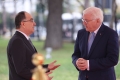 MP Klotilda Bushka and Deputy Prime Minister and Minister of Energy and Infrastructure Belinda Balluku during an official reception ceremony for German President Frank-Walter Steinmeier by Albanian President Bajram Begaj in the Presidency. Steinmeier's visit to Albania comes as a result of his Balkan tour and is the first visit of a German president to Albania in 27 years.