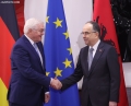 The President of the Republic, Bajram Begaj and his German counterpart, Frank-Walter Steinmeier shaking hands during an official reception ceremony at the Presidency. Steinmeier's visit to Albania comes as a result of his Balkan tour and is the first visit of a German president to Albania in 27 years.