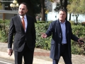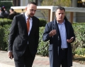 MPS OUTSIDE THE PARLIAMENT - MPs Ervin Salianji and Flamur Noka leaving the parliament hall after a parliamentary session where German President Frank-Walter Steinmeier gave a speech. Steinmeier's visit to Albania comes as a result of his Balkan tour and is the first visit of a German president to Albania in 27 years.