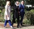 MPs Ina Zhupa, Luan Baci and Belind Kellici leaving the parliament hall after a parliamentary session where German President Frank-Walter Steinmeier gave a speech. Steinmeier's visit to Albania comes as a result of his Balkan tour and is the first visit of a German president to Albania in 27 years.