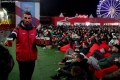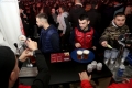 Albanian fans buying food and beverages during the match Switzerland vs Serbia, valid for the group stage of the Qatar 2022 World Cup, in Tirana's Fanzone in the Skanderbeg Square. Several players of Albanian origin play in the Swiss team, among them Xherdan Shaqiri and Granit Xhaka, where the former scored during the match.