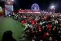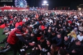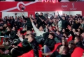FANS WATCH THE SWITZERLAND SERBIA MATCH - Albanian fans sing and light flares while watching the match Switzerland vs Serbia, valid for the group stage of the Qatar 2022 World Cup, in Tirana's Fanzone in the Skanderbeg Square. Several players of Albanian origin play in the Swiss team, among them Xherdan Shaqiri and Granit Xhaka, where the former scored during the match.