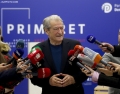 Head of the Democratic Party, Sali Berisha speking for journalists speaking during the Primaries in the Democratic Party, which aim to produce DP candidates for mayor, who will compete in the local elections on May 14, 2023. The primaries were organized in some of the main districts of the country, while about 42,000 party members or sympathizers voted.
