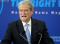 The chairman of the Democratic Party, Sali Berisha enters a press conference at the blue headquarters, where the chairman spoke about the protest of December 6 in Tirana, while inviting people to protest against the government. Berisha clarified that the protest has nothing to do with the EU-Western Balkan Summit and is only against Prime Minister Rama.