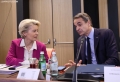 The President of the European Commission, Ursula Von Der Leyen and the Greek Prime Minister, Kyriakos Mitsotakis during the proceedings of the EU-Western Balkans Summit , organized in Tirana. At the end of the meeting, the agreement was confirmed for the reduction of roaming charges for the citizens of the Balkans in the EU and aid in the value of 85 million Euros from the EU for Albania in the energy sector.
